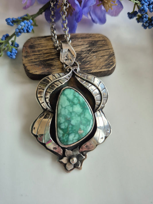 The Pathway Pendant – Elongated Turquoise & Silver Leaves