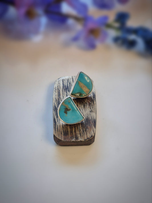 Blue Moon Prairie Earrings – Wide Crescent Blue Turquoise Studs