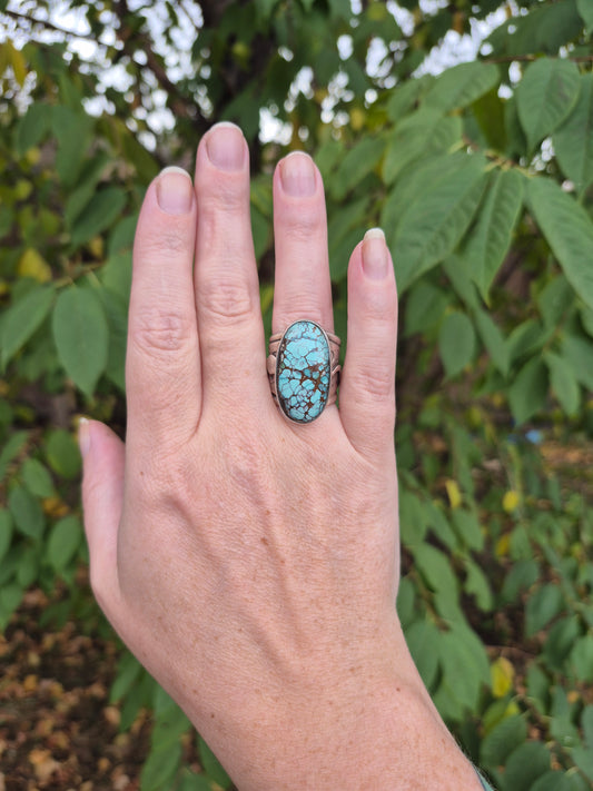 The Moonshadow Ring – Kingman Turquoise & Silver Serpent