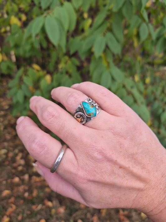 The Solstice Ring – Kingman Turquoise & Brass Serpent