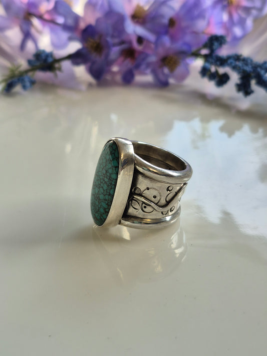 The Guardian Ring – Large Oval Turquoise & Silver Serpent
